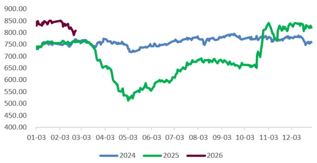 市场密切关注美国环保署拟于3月底前出台的新提案。其核心影响在于,政策信号影响市场预期,即便在最终规则出台前,明确的政策制定时间表和上调预期,就足以提振市场情绪,支撑豆油价格。市场短期走势紧密围绕政策细则的出台,其政策具体数值将决定豆油需求增量的幅度,进而影响美豆压榨量的上限。1月,美国全国油籽加工商协会成员的大豆压榨量达到2.21564亿蒲式耳,同比增长10.6%,创下历史同期最高纪录。目前美豆压榨利润处于良好区间。截至2月20日当周,美国大豆压榨利润为3.06美元/蒲式耳,显著高于2025年的平均压榨利润2.46美元/蒲式耳。